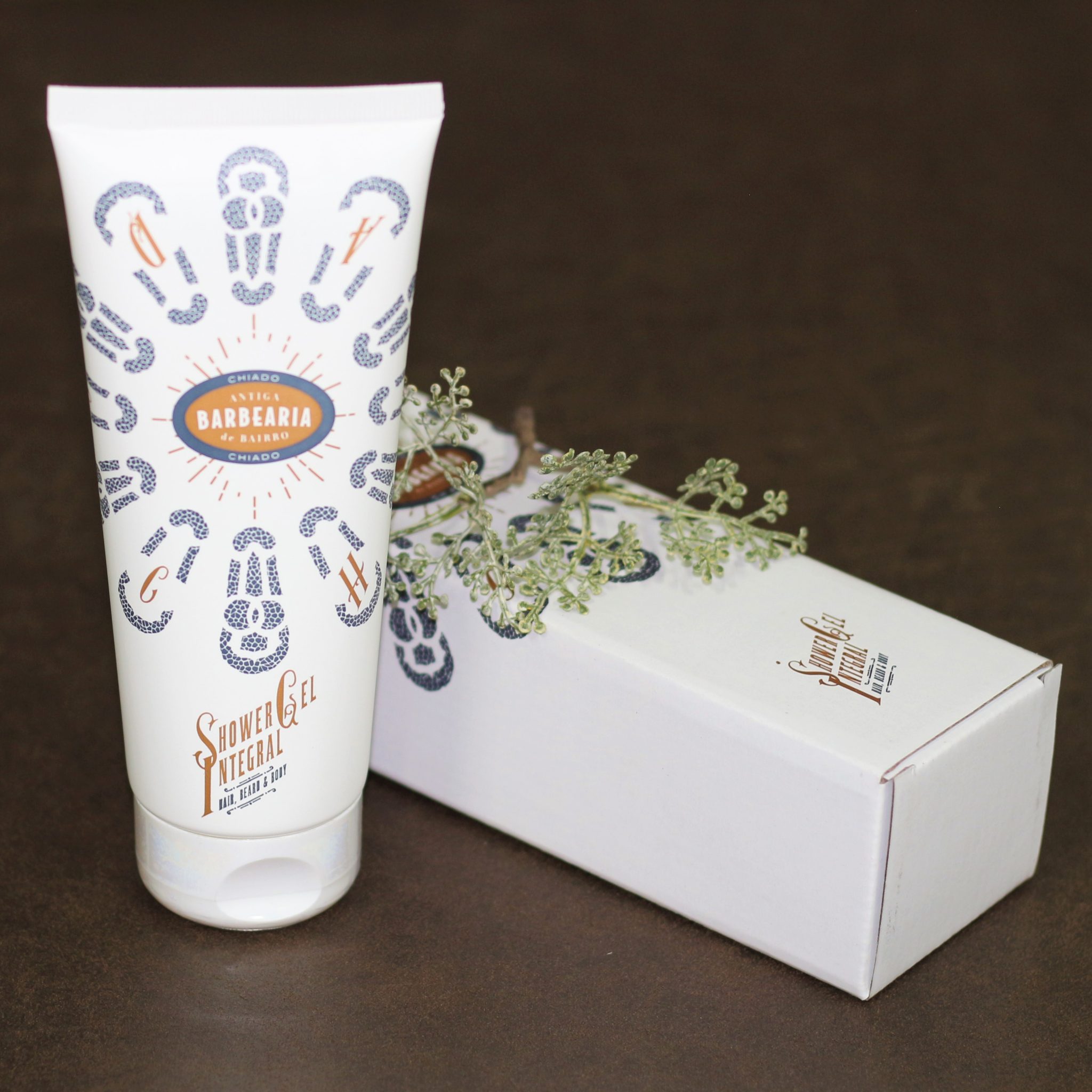Shower gel de 200 ml da marca “Antiga Barbearia de Bairro”, linha Chiado.