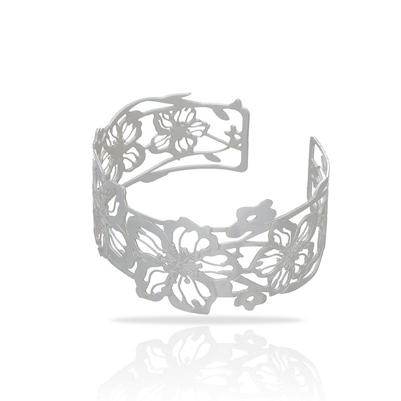 Bracelete prateada inspirada nas amendoeiras em flôr