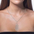 O comprimento do fio varia entre 40cm e 45cm, o pingente tem cerca de 2.2 x 4.9cm.